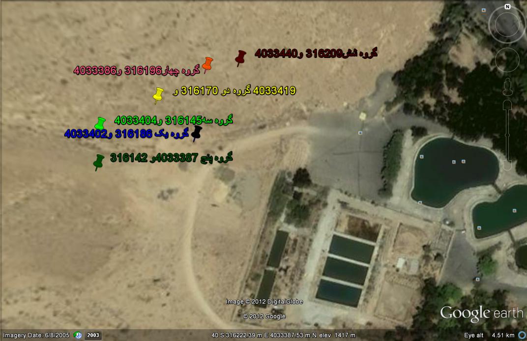 مختصات نقاط برداشت گروهها به شکل UTM در کنار نام هر گروه آمده است. منطقه برداشت آبشار شاهرود