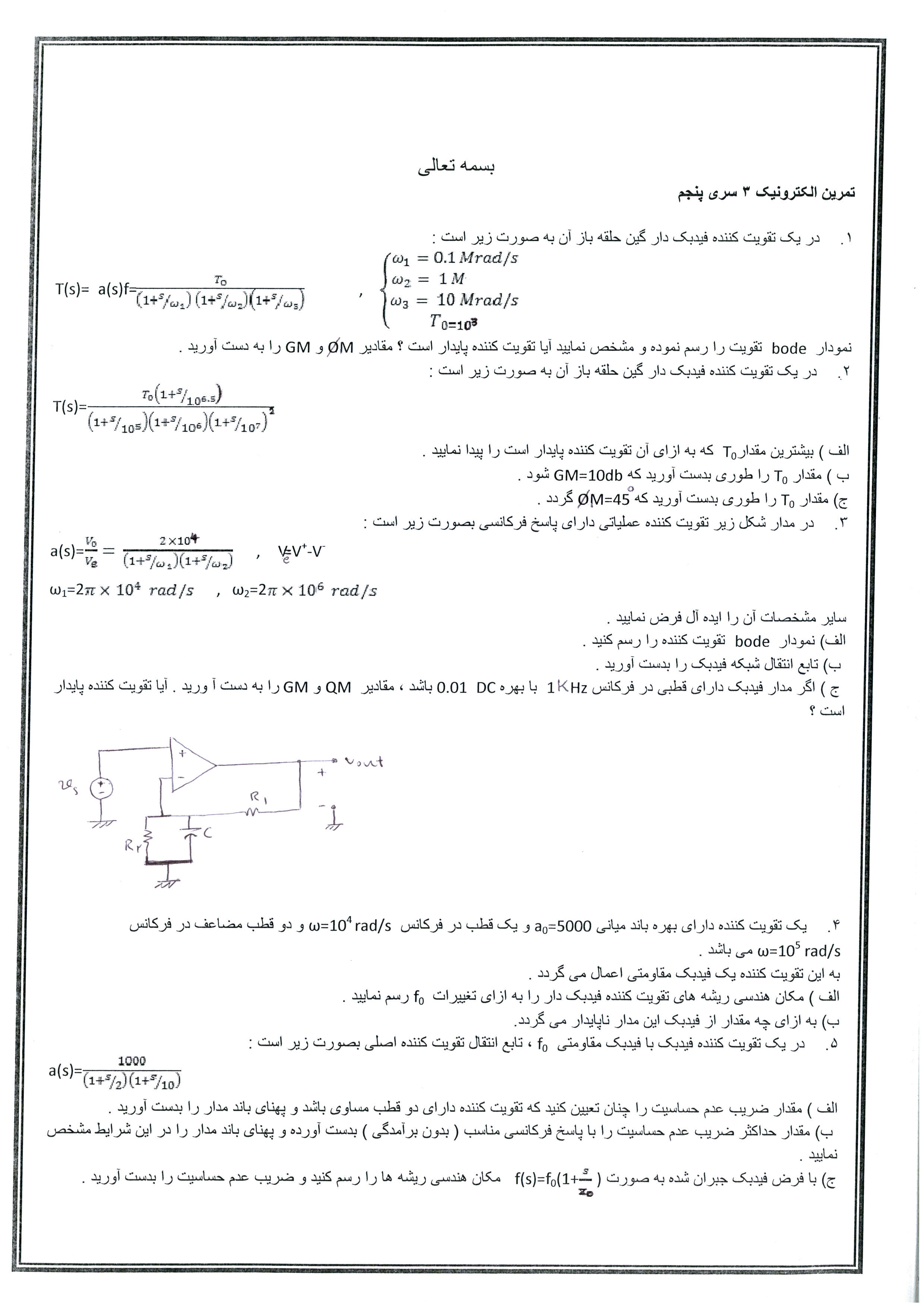 تمرین شماره های 3-4-6-8-11-13-15-17-27-33-34-47 -54 از فصل پنچم کتاب درسی تاریخ تحویل یکشنبه 23/2/97