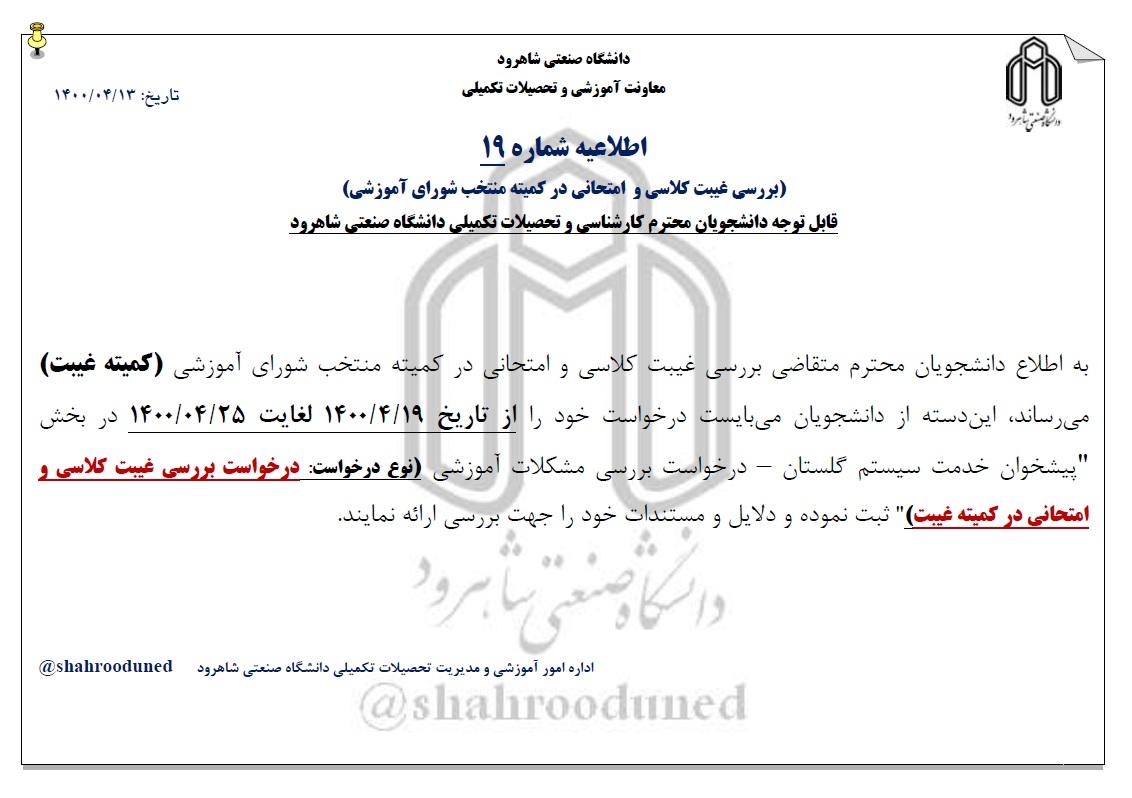 اطلاعیه شماره 19