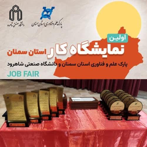 لوح و تندیس یادبود و همچنین جوایزی به رسم یادگار به مدیران و یا نمایندگان هشت شرکت منتخب در نخستین نمایشگاه کار استان سمنان از سوی رئیس دانشگاه صنعتی شاهرود و رئیس پارک علم و فناوری استان سمنان و جمعی از مسئولان استانی اهدا شد.