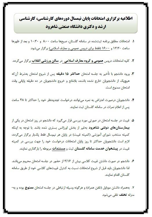 اطلاعیه برگزاری امتحانات پایان نیمسال دوره های کارشناسی، ارشد و دکتری