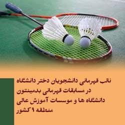 به گزارش روابط عمومی و به نقل از مدیریت تربیت بدنی و امور فوق برنامه دانشگاه صنعتی شاهرود، مسابقات قهرمانی بدمینتون دانشجویان دختر دانشگاه ها و موسسات آموزش عالی منطقه 9 کشور به میزبانی دانشگاه بجنورد از تاریخ 22 لغایت 25 آذر ماه با حضور 5 دانشگاه برگزار گردید و تیم بدمینتون این دانشگاه با غلبه بر دانشگاه کوثر بجنورد و غیرانتفاعی سنابادگلبهار و دانشگاه بجنورد به فینال این مسابقات راه یافت و در یک رقابت سخت در برابر تیم دانشگاه فردوسی مشهد نائب قهرمان این دوره از مسابقات گردید.