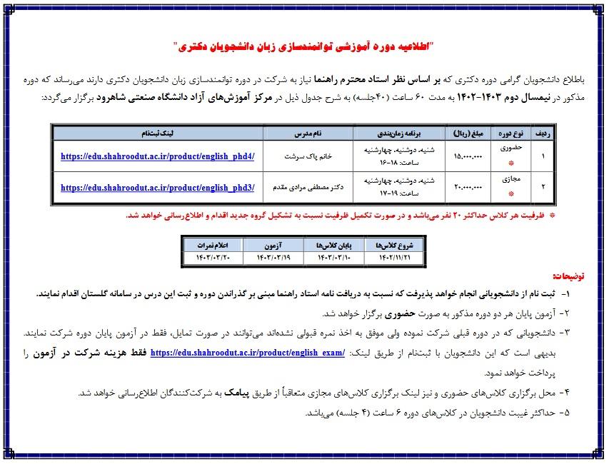 اطلاعیه دوره آموزشی توانمندسازی زبان دانشجویان دکتری