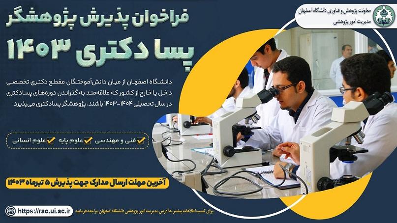 فراخوان پذیرش پژوهشگر پسادکتری 1403 در دانشگاه اصفهان
