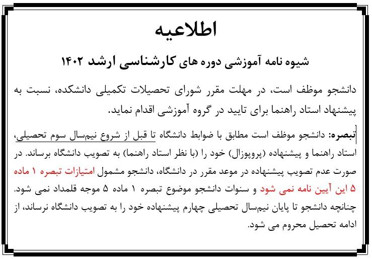 شیوه نامه آموزشی دوره های کارشناسی ارشد 1402