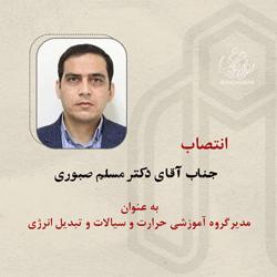 به گزارش روابط عمومی دانشگاه، طی حکمی از سوی دکتر مرتضی ایزدی فرد رئیس دانشگاه صنعتی شاهرود ضمن تقدیر از دکتر در کسوت مدیر گروه آموزشی حرارت،سیالات و تبدیل انرژی؛ دکتر مسلم صبوری استادیار دانشکده مهندسی مکانیک به عنوان مدیر گروه آموزشی حرارت،سیالات و تبدیل انرژی منصوب گردید.