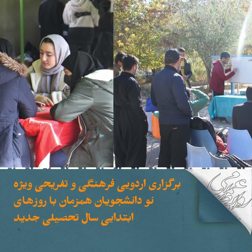 این اردو همزمان با استقبال پرشور نودانشجویان در راستای ایجاد روحیه نشاط برای این دانشجویان رقم خورد، به نحوی که در هر دو روز با همکاری کانون نشاط بیش از 20 بازی میدانی، هیجانی، فکری و رومیزی به ایجاد شادابی دانشجویان در روزهای آغاز فصل جدید زندگی کمک نمود و در این راستا و با همین رویکرد کانون تئاتر این مدیریت نیز با برگزاری مسابقات پانتومیم اهداف این اردو را تکمیل نمود.