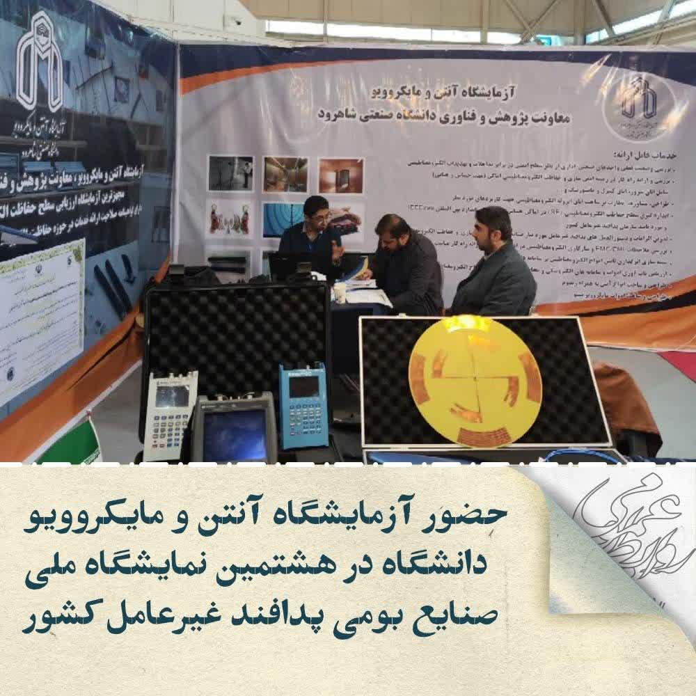 به گزارش روابط عمومی دانشگاه صنعتی شاهرود و به نقل قول از دکتر جواد قالیبافان عضو هیأت علمی دانشکده مهندسی برق و سرپرست آزمایشگاه آنتن و مایکروویو دانشگاه، این آزمایشگاه با دارا بودن گواهینامه صلاحیت 2 ، در هشتمین نمایشگاه ملی صنایع بومی پدافند غیرعامل کشور در بازه زمانی23 لغایت 26 آبان ماه جاری در محل سالن ملل (۵)، نمایشگاه بینالمللی تهران حضور یافت.