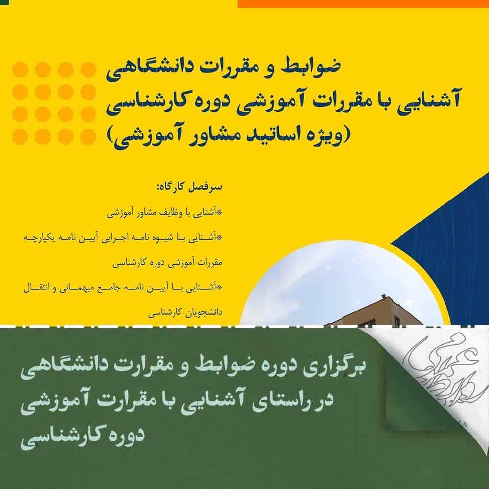در این دوره دکتر هادی جعفری مدیر امور آموزشی دانشگاه، به عنوان مدرس دوره ابتدا به مرور شیوه نامه مشاوران آموزشی دانشگاه پرداخت و در ادامه به منظور راهنمایی هر چه موثرتر دانشجویان، آیین نامه های آموزشی دوره کارشناسی مورد بررسی قرار گرفت.