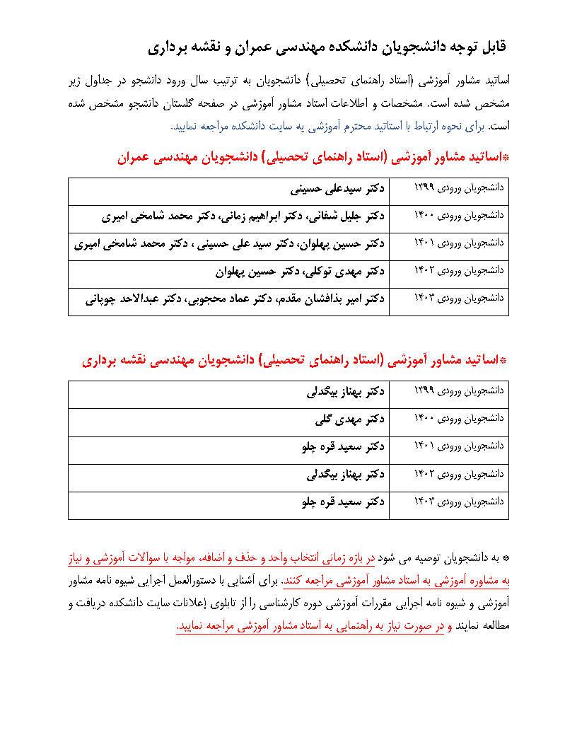 *اساتید مشاور آموزشی (استاد راهنمای تحصیلی( دانشجویان مهندسی نقشه برداری