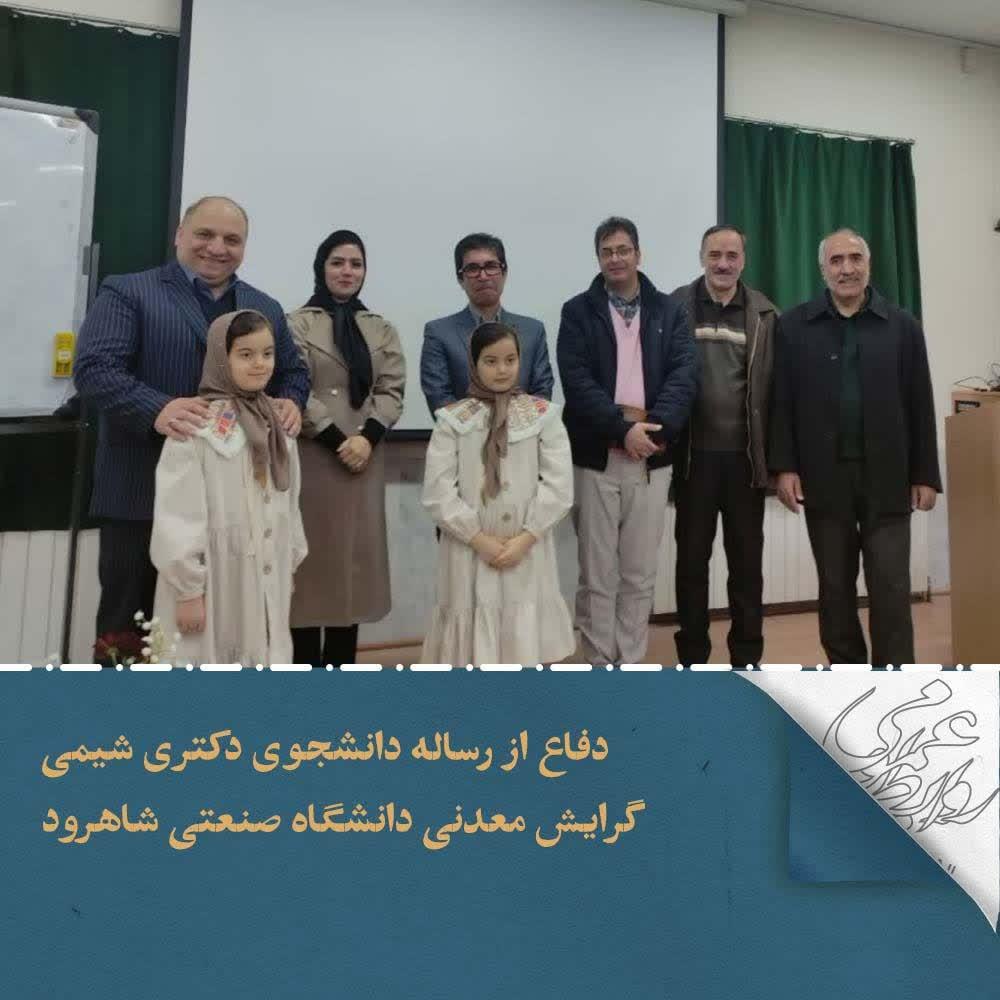 به گزارش روابط عمومی دانشگاه صنعتی شاهرود، سمانه غزال دانشجوی دکتری شیمی گرایش معدنی دانشگاه صنعتی شاهرود از رساله خود تحت عنوان «سنتز و مشخصه یابی نانو ذرات اکسید تنگستن به روش شیمی سبز و بررسی خواص فتوکالیستی و سمیت سلولی آنها» به راهنمایی دکتر مهدی میرزائی دانشیار گروه شیمی معدنی این دانشگاه با کسب درجه عالی دفاع نمود.