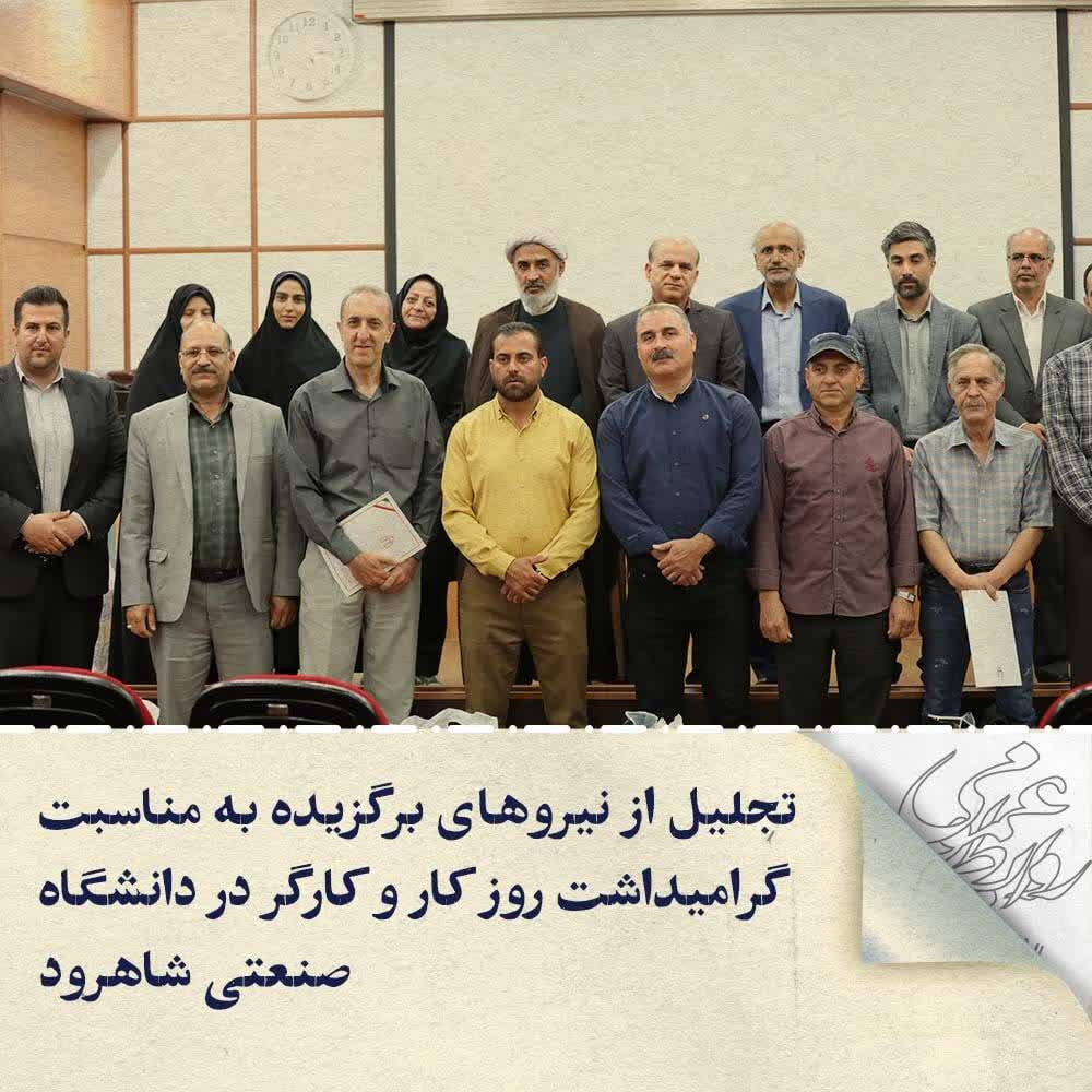 به گزارش روابط عمومی دانشگاه صنعتی شاهرود، به مناسبت روز کار و کارگر، مراسم گرامیداشتی با حضور مسئولان دانشگاه، کارکنان و نیروهای خدماتی و شرکتی عصر روز چهارشنبه 24 اردیبهشت ماه جاری در تالار زنده یاد دکتر پیروز برگزار شد.