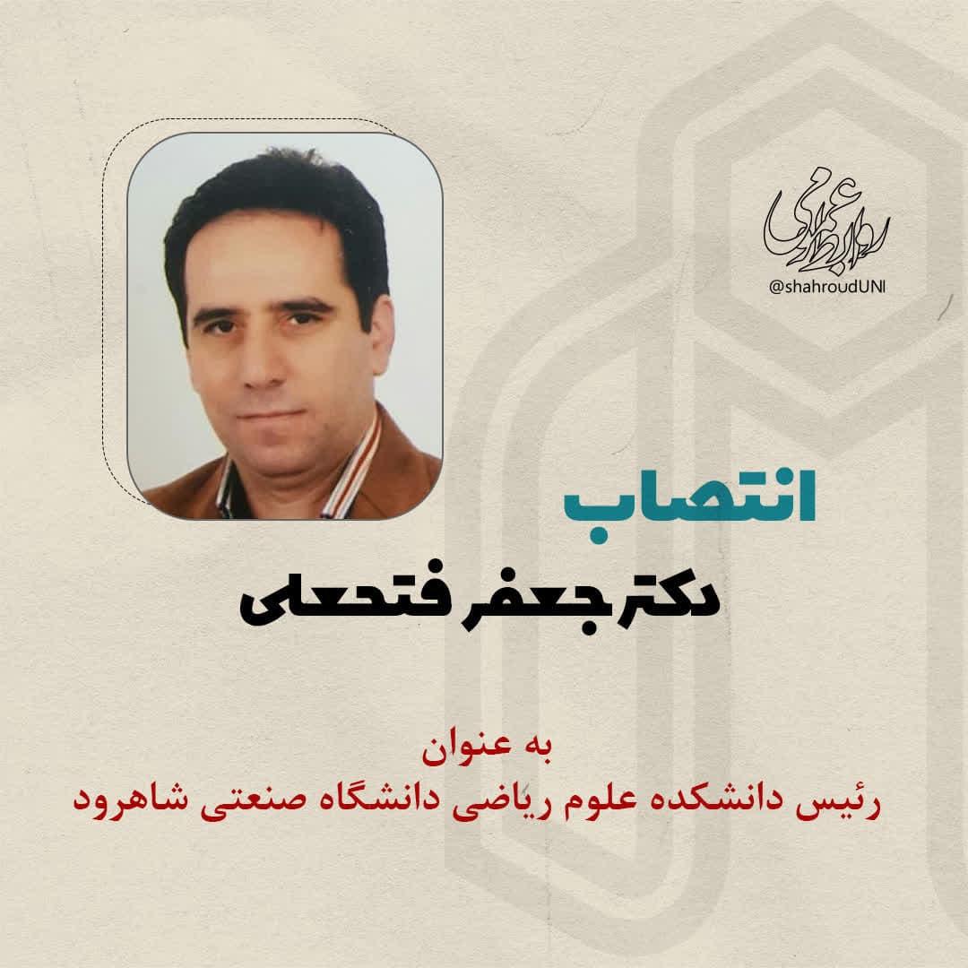 با عنایت به بند «10- هـ » ماده «4» آیین نامه جامع مدیریت دانشگاه ها و موسسات آموزش عالی، پژوهشی و فناوری مصوب جلسه 684 شورای عالی انقلاب فرهنگی و مراتب تعهد، تخصص و تجربیات ارزنده جنابعالی، به موجب این ابلاغ با حفظ پست سازمانی به مدت سه سال به عنوان رئیس دانشکده ریاضی منصوب می شوید تا وظایف و امور محوله را بر اساس آیین نامه مذکور و با هماهنگی معاونین و مدیران محترم ستادی به انجام رسانید.