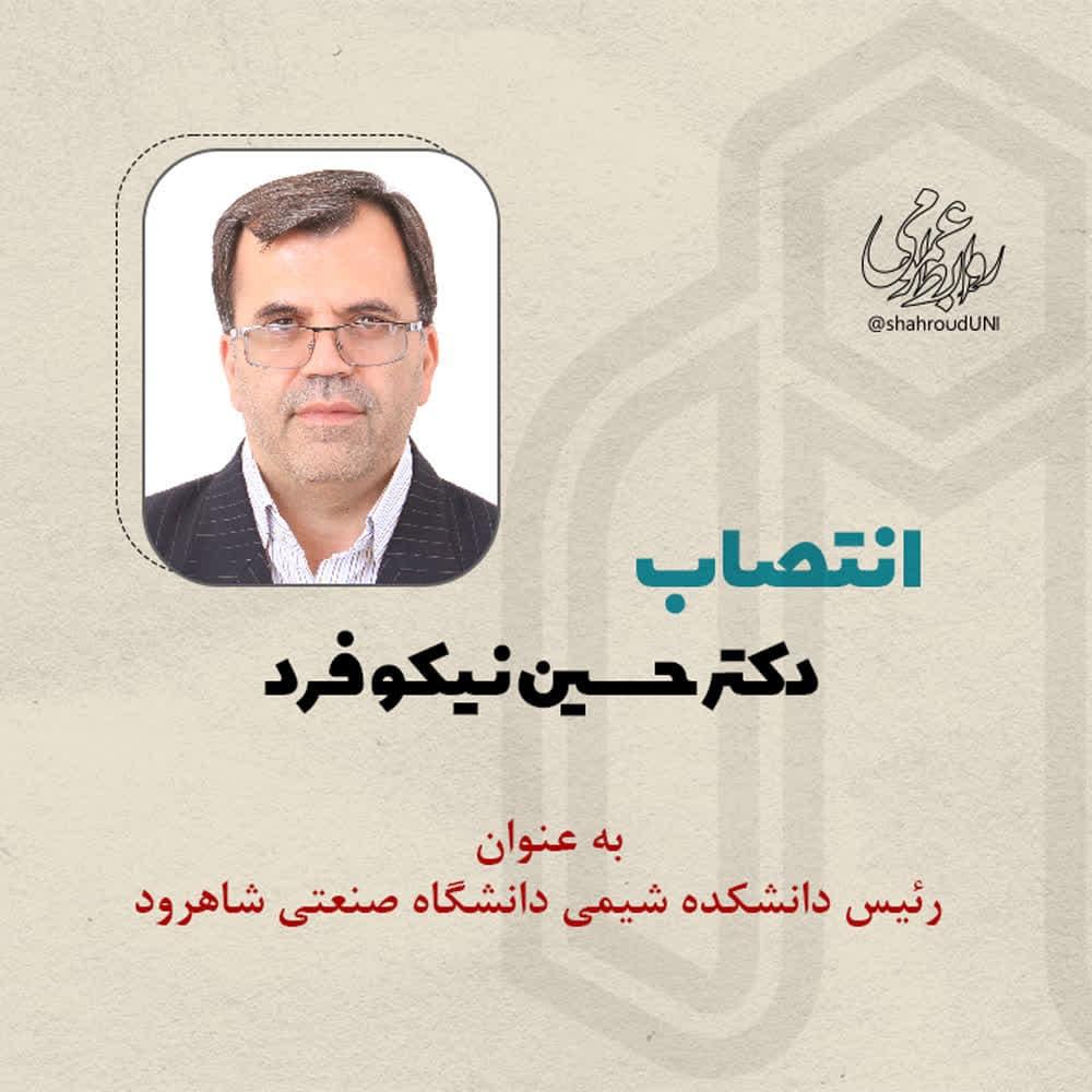 با عنایت به بند «10- هـ » ماده «4» آیین نامه جامع مدیریت دانشگاه ها و موسسات آموزش عالی، پژوهشی و فناوری مصوب جلسه 684 شورای عالی انقلاب فرهنگی و مراتب تعهد، تخصص و تجربیات ارزنده جنابعالی، به موجب این ابلاغ با حفظ پست سازمانی به مدت سه سال به عنوان رئیس دانشکده شیمی منصوب می شوید تا وظایف و امور محوله را بر اساس آیین نامه مذکور و با هماهنگی معاونین و مدیران محترم ستادی به انجام رسانید.