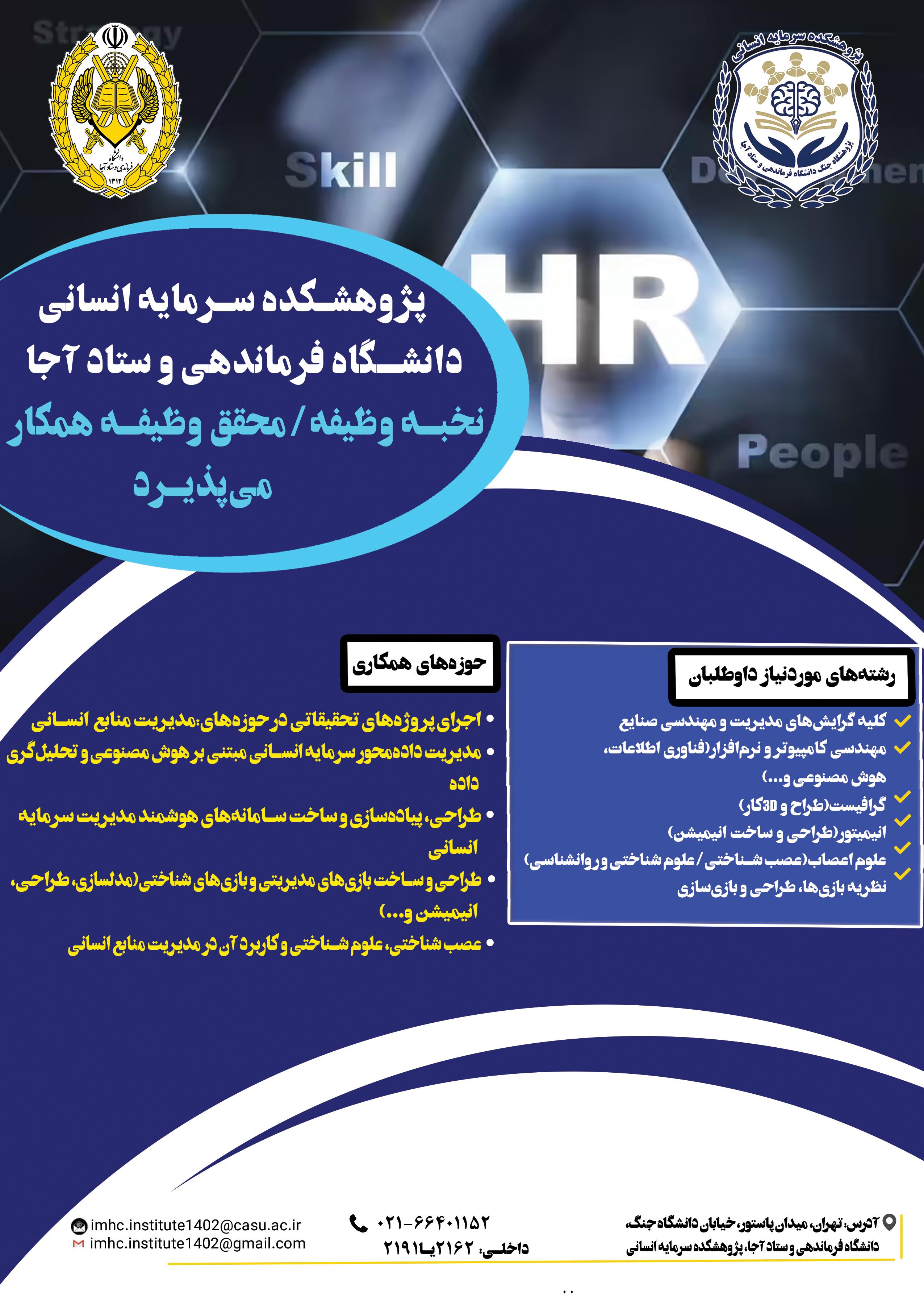 پژوهشکده سرمایه انسانی دانشگاه فرماندهی و ستاد آجا نخبه وظیفه / محقق وظیفه همکار می پذیرد.