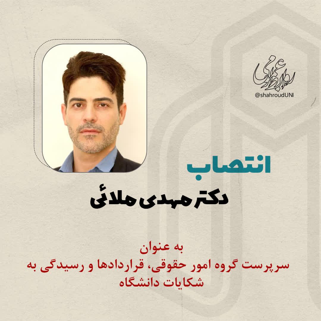 به گزارش روابط عمومی دانشگاه دکتر مرتضی ایزدی فرد رئیس این دانشگاه طی حکمی ضمن تقدیر و تشکر از زحمات محمد عباسی درکسوت رئیس گروه امور حقوقی، قراردادها و رسیدگی به شکایات، دکتر مهدی ملائی استادیار دانشکده مهندسی صنایع و مدیریت را به عنوان سرپرست گروه امور حقوقی، قراردادها و رسیدگی به شکایات دانشگاه منصوب کرد.