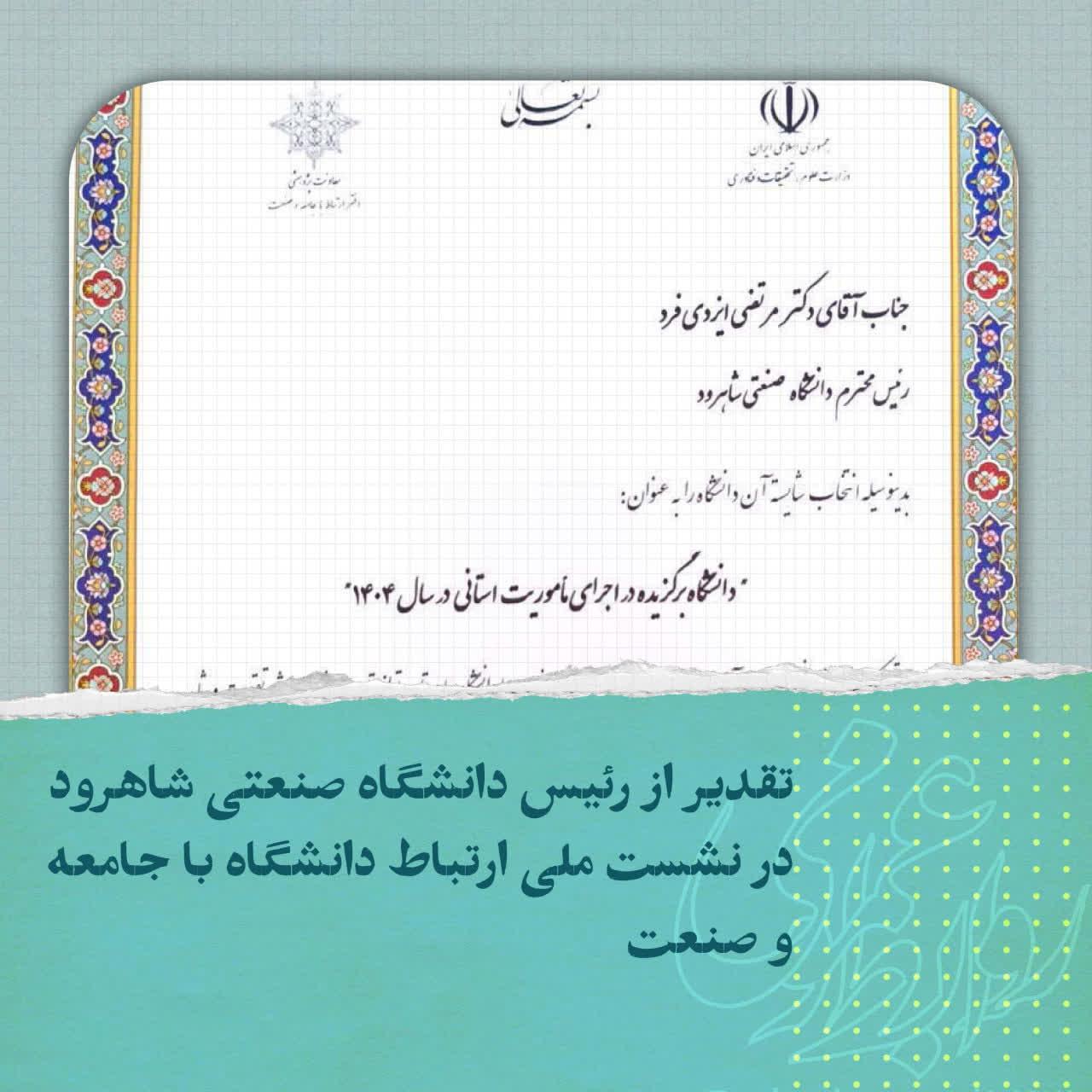 این انتخاب، نشاندهنده نقش فعال و اثرگذار دانشگاه صنعتی شاهرود در حل مسائل منطقهای، توسعه پایدار و تقویت پیوند دانشگاه با نیازهای واقعی جامعه و صنعت است.