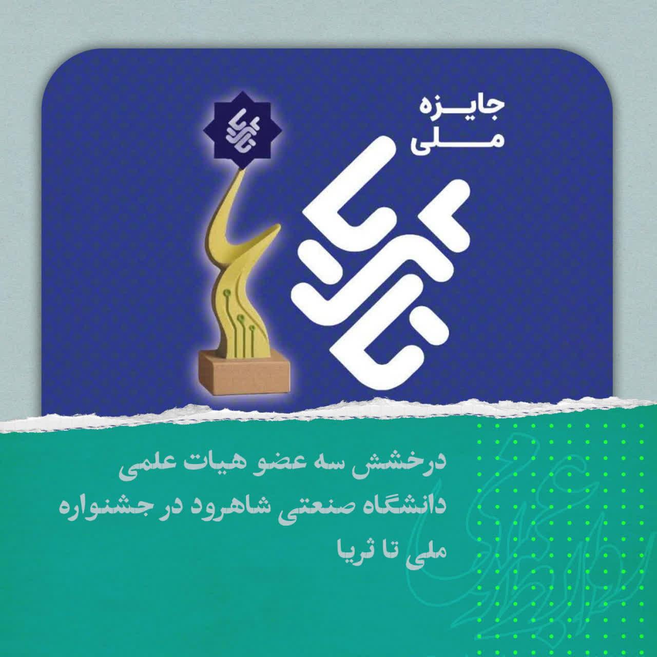 دکتر مهدی حیدری عضو هیئت علمی دانشکده مهندسی مکانیک دانشگاه صنعتی شاهرود و شرکت فلزکاران نوین شاهوار به مدیریت «دکتر مجید محمدی» و «دکتر محسن کریمی» از اعضای هیات علمی دانشکده مهندسی شیمی و مواد در نخستین جشنواره کشوری تقدیر از پیشگامان و نخبگان کسبوکار دانشبنیان «تا ثریا» که در مرکز همایشهای بینالمللی صداوسیما برگزار شد، برگزیده شدند.