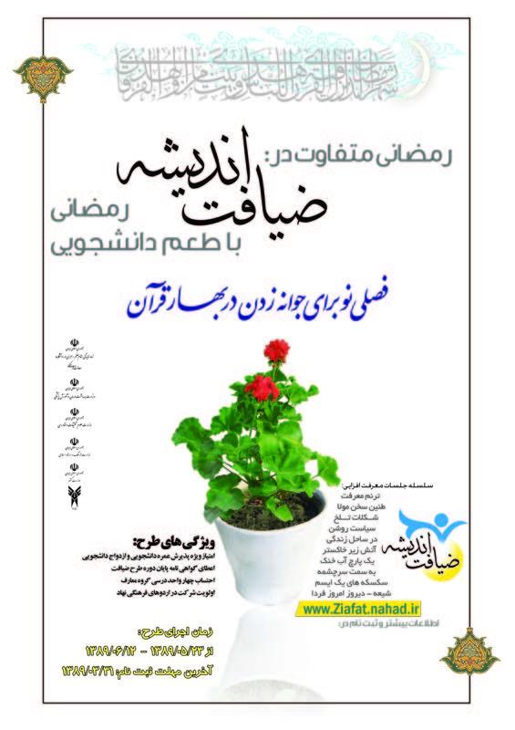 مقدمه :بهار جانهای شیفته حقایق ناب در راه است، ماه شکفتن، جوانه زدن، سبز شدن و به بار نشستن مشتاقان ملاقات دوست نزدیک است، امسال بهار قرآن و ماه رمضان در تابستان گرم و داغ واقع است.همیشه ماه رمضان از شیرینترین و خاطره انگیزترین ایام سال در دانشگاهها بود که نسیم معنویت آن فضای پر از نشاط جوانان را عطرآگین میکرد، و برای دانشجویان روزهدار و با معرفت، محیط دانشگاه رنگ و بوی دیگری مییافت.اما امسال ماه رمضان دانشگاهها تعطیل است، دیگر از آن جمعهای صمیمی هنگام سفره سحری و آن سبکبالی و حالات انقطاع دانشجویان در نزدیکی افطار خبری نیست!چه باید کرد؟ فقط امسال که نیست، تا ده سال دیگر نیز چنین است! آیا از خیر فضای زیبای دانشگاهها در ماه رمضان بگذریم و تسلیم تعطیلات شویم، یا راه دیگری میتوان یافت؟فرصت طلایی ماه رمضان را برای طلا شدن وجودمان از دست نمیدهیم و میرویم که با همتی بلند درب دانشگاههای بزرگ کشور را به روی دانشجویان علاقمند به فضای روحانی و محیط سرتاسر شور و شادابی دانشجویی باز کنیم و رمضانی متفاوت با رمضانهای دیگر را تجربه نماییم.طرح «ضیافت اندیشه» دانشجویان سراسر کشور را در ماه رمضان دعوت به ضیافتی میکند که در دل ضیافت خدا قرار داد تا «ضیافت در ضیافت» را در 35 مرکز دانشگاهی تجربه نمایند و از فرصت ماه رمضان بیشترین بهره را برای سیر و سلوک معنوی و تعمیق بینش دینی خود برده باشند و از حضور در کنار همدیگر فیض ببرند.30 دانشگاه بزرگ کشور در مراکز 30 استان و 5 دانشگاه بزرگ شهر تهران با همکاری و مساعدت دانشگاههای دیگر، محل اجرای این طرح خواهند بود که هر کدام با ظرفیت پذیرش 3 هزار دانشجو در مجموع 100 هزار دانشجو را در ماه رمضان تحت پوشش برنامههای این طرح خواهند گرفت.کلاسهایی که در این طرح ارائه خواهند شد موضوعات مورد نیاز و در عین حال جذاب برای دانشجویان است و برنامههای متنوع معنوی، فرهنگی، اجتماعی، سیاسی، هنری و ورزشی که در این طرح پیشبینی شده است پاسخگوی سلیقههای مختلف و ذوقهای متنوع دانشجویان است و در نهایت یک فضای پرنشاط و شاداب، معنوی و روحانی، علمی و آموزشی، صمیمی و دوستانه ایجاد خواهد شد تا در سایه برکات ماه مهمانی خدا بیشترین بهره را دانشجویان عزیز برده باشند، ان شاءاللهویژگی مهم طرح