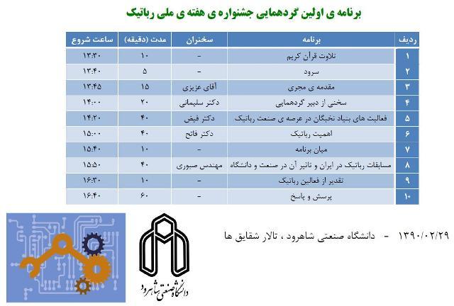 اعلام برنامه های جشنواره هفته ملی رباتیک در دانشگاه صنعتی شاهرود