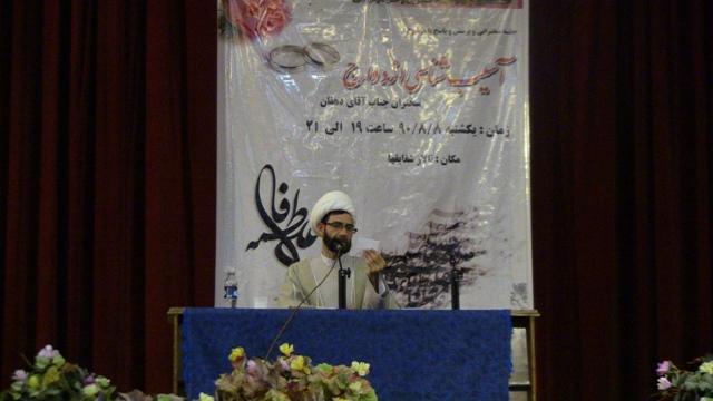 در این مراسم که یکشنبه 8 آبان در تالار شقایق های این دانشگاه برپا شد حجت الاسلام و المسلمین احمدرضا دهقان استاد حوزه دانشگاه پیرامون مسائل ازدواج بخصوص در محیط های علمی و دانشگاهی سخنرانی کرد.
