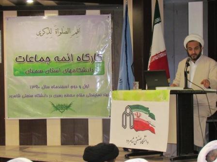 در این گردهمایی که 35 نفر از ائمه جماعات دانشگاه های استان سمنان حضور داشتند موضوعاتی چون ویژگی های مبلغ موفق ، فلسفه ی احکام ، اسلام هراسی از دیدگاه غرب، بیداری اسلامی و شیوه های نوین تبلیغ و همچنین سمینار جریان سازی فرهنگی با حضور حجت الاسلام علی رضا مستشاری مشاور ریاست نهاد مقام معظم رهبری در دانشگاه ها و معاونت امور مبلغان نهاد، حجت الاسلام سید محمد شمس مسئول دبیرخانه ستاد عالی اقامه نماز در دانشگاه ها ارائه شد. در بخش دیگری از این همایش موضوعات بیداری اسلامی و جریان سازی فرهنگی توسط حجج اسلام دکتر مهدی علیزاده موسوی استاد دانشگاه قم و علی رحمانی استاد حوزه قم مورد بحث و بررسی قرار گرفت.