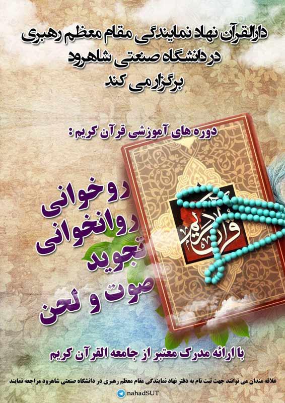 به گزارش روابط عمومی دانشگاه صنعتی شاهرود، دارالقرآن نهاد نمایندگی مقام معظم رهبری، دوره های آموزشی قرآن کریم را در دانشگاه صنعتی شاهرود برگزار می کند.