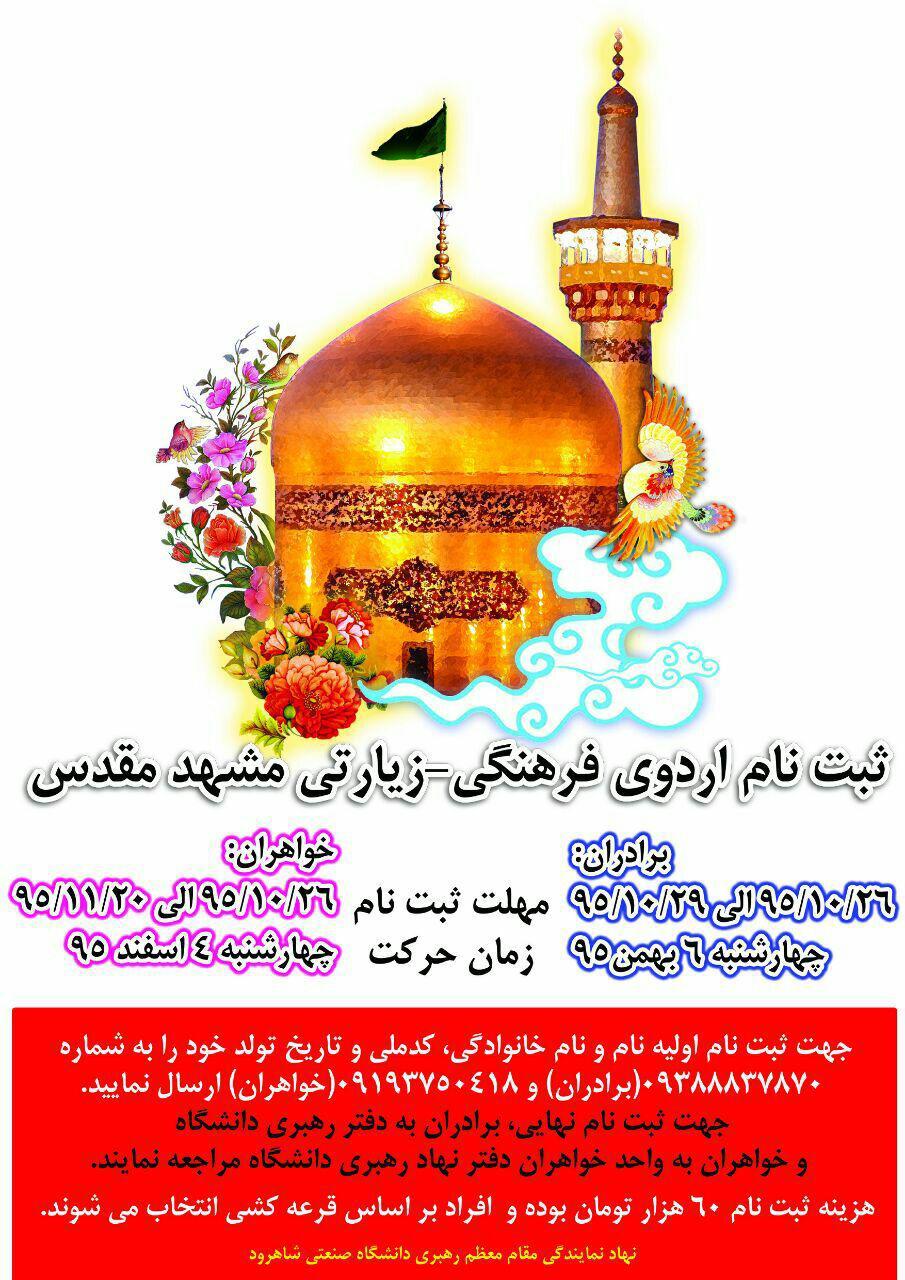 دانشگاه صنعتی شاهرود، اردوی فرهنگی-زیارتی مشهد مقدس را در روز چهارشنبه 6 بهمن 95