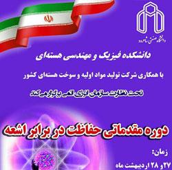 دانشکده فیزیک و مهندسی هسته ای دوره مقدماتی حفاظت دربرابر اشعه رادر 27 و28 اردیبهشت ماه جاری برگزار می کند.