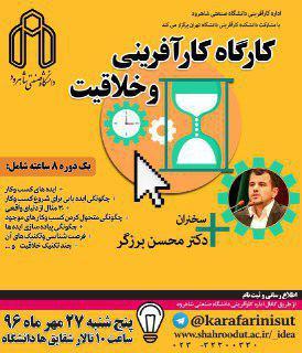 در این زمینه اولین كارگاه تحت عنوان كارآفرینی و خلاقیت با مشاركت دانشكده كارآفرینی دانشگاه تهران و اداره كارآفرینی دانشگاه صنعتی شاهرود در روز پنجشنبه 27 مهر ماه جاری از ساعت 10 صبح در سالن آمفی تئاتر كتابخانه مركزی در محل پردیس مهندسی فناوری های نوین دانشگاه برگزار می گردد.