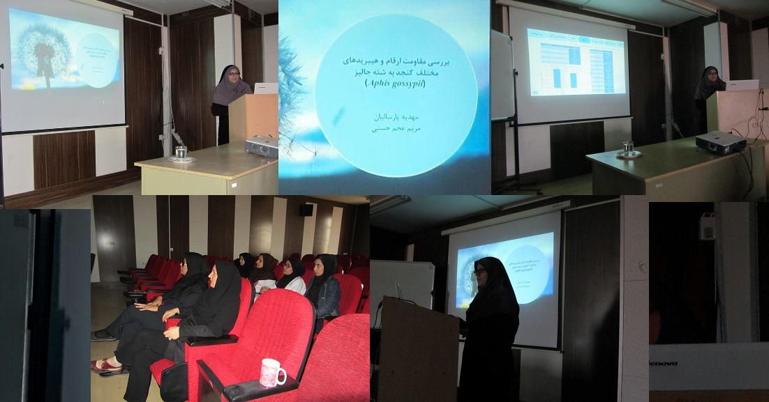 احتراما باستحضار می رساند که اخیراً طرحی با عنوان "بررسي مقاومت ارقام و هيبريدهاي مختلف كنجد به شته Aphis gassypi" در محل دانشکده کشاورزی انجام شد که این طرح کاری مشترک از دکتر مهدیه پارسائیان و دکتر مریم عجم حسنی بود. سمینار مربوط به این طرح در روز یکشنبه هفته جاری مورخ 1369/10/03 ساعت 10 صبح در محل آمفی تئاتر دانشکده کشاورزی، توسط خانم دکتر مهدیه پارسائیان ارائه شد. امید است این گونه اقدامات باعث ارتقاء سطح دانش علمی و عملی تمامی دانشجویان و فرهیختگان شده و در سطح وسیع، خصوصاً در حوزه کشاورزی مورد استفاده قرار گیرد. انشاءالله...