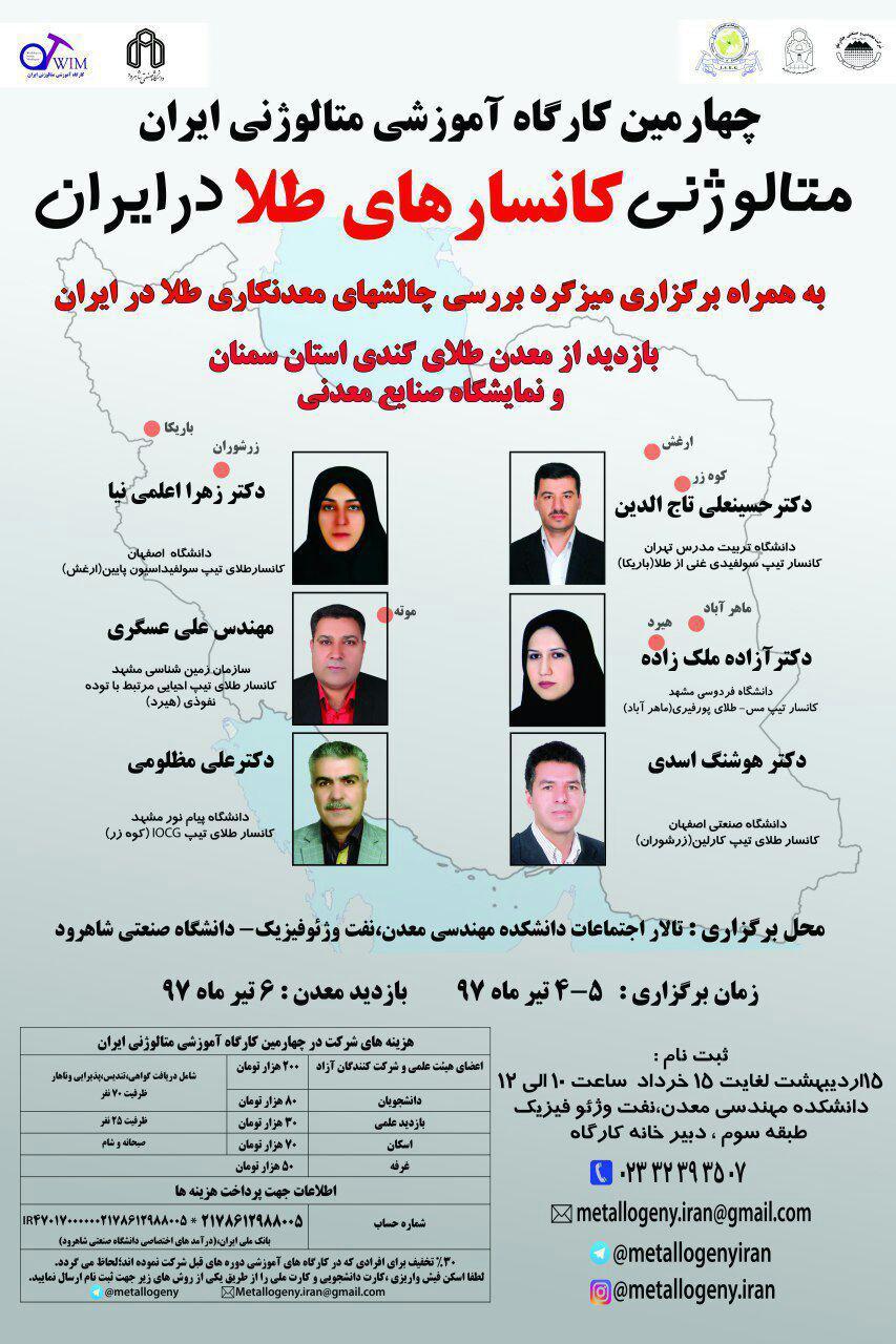 اخبار و رویدادها: چهارمین کارگاه متالوژنی کانسارهای طلای ایران برگزار خواهد شد