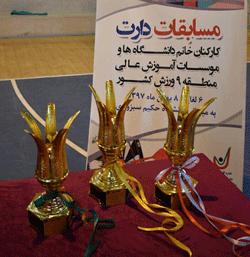 به گزارش روابط عمومی دانشگاه صنعتی شاهرود، كاركنان خانم این دانشگاه در مسابقات قهرمانی دارت كاركنان دانشگاههای منطقه ۹ كشور از تاریخ ۶ لغایت ۸ بهمن ماه ۹۷ با حضور ۷ تیم از دانشگاههای منطقه ۹ كشور به میزبانی دانشگاه حكیم سبزواری مقام سوم را كسب نمودند.