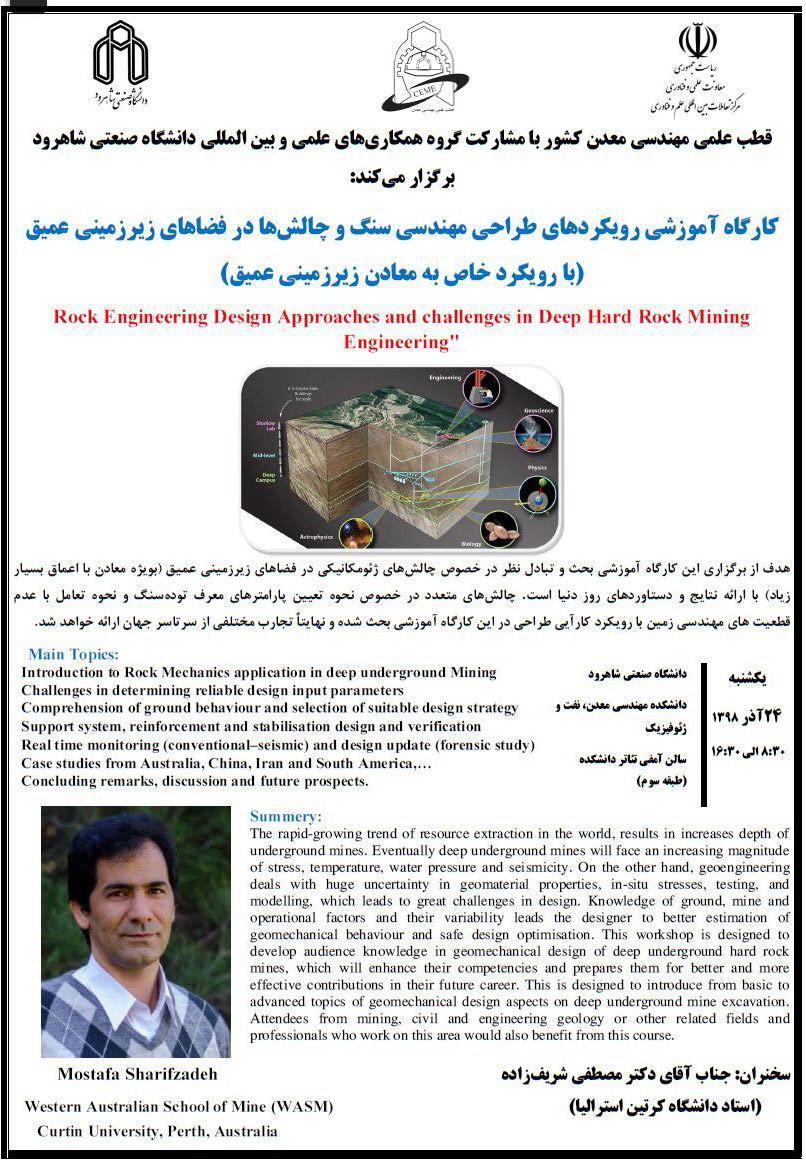 آموزشی در دو بخش برگزار که در بخش اول ( نوبت صبح ) مباحث اصلی شامل مقدمه ای بر کاربردهای مکانیک سنگ در معدن کاری