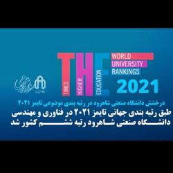 دانشگاه صنعتی شاهرود در حوزه موضوعی مهندسی و فناوری (شامل رشتههای مهندسی عمومی، مهندسی برق و الکترونیک، مهندسی مکانیک، مهندسی عمران و مهندسی شیمی) و حوزه علوم پایه (شامل رشته های شیمی، زمین شناسی، ریاضیات، نجوم و فیزیک) موفق به كسب رتبه 600 تا 801 در ميان دانشگاه هاي ايراني حاضر در رتبه بندي تايمز سال 2021 شد.