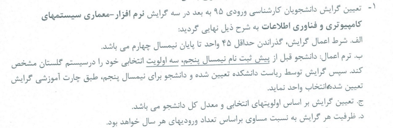 نحوه تعیین گرایش دانشجویان کارشناسی