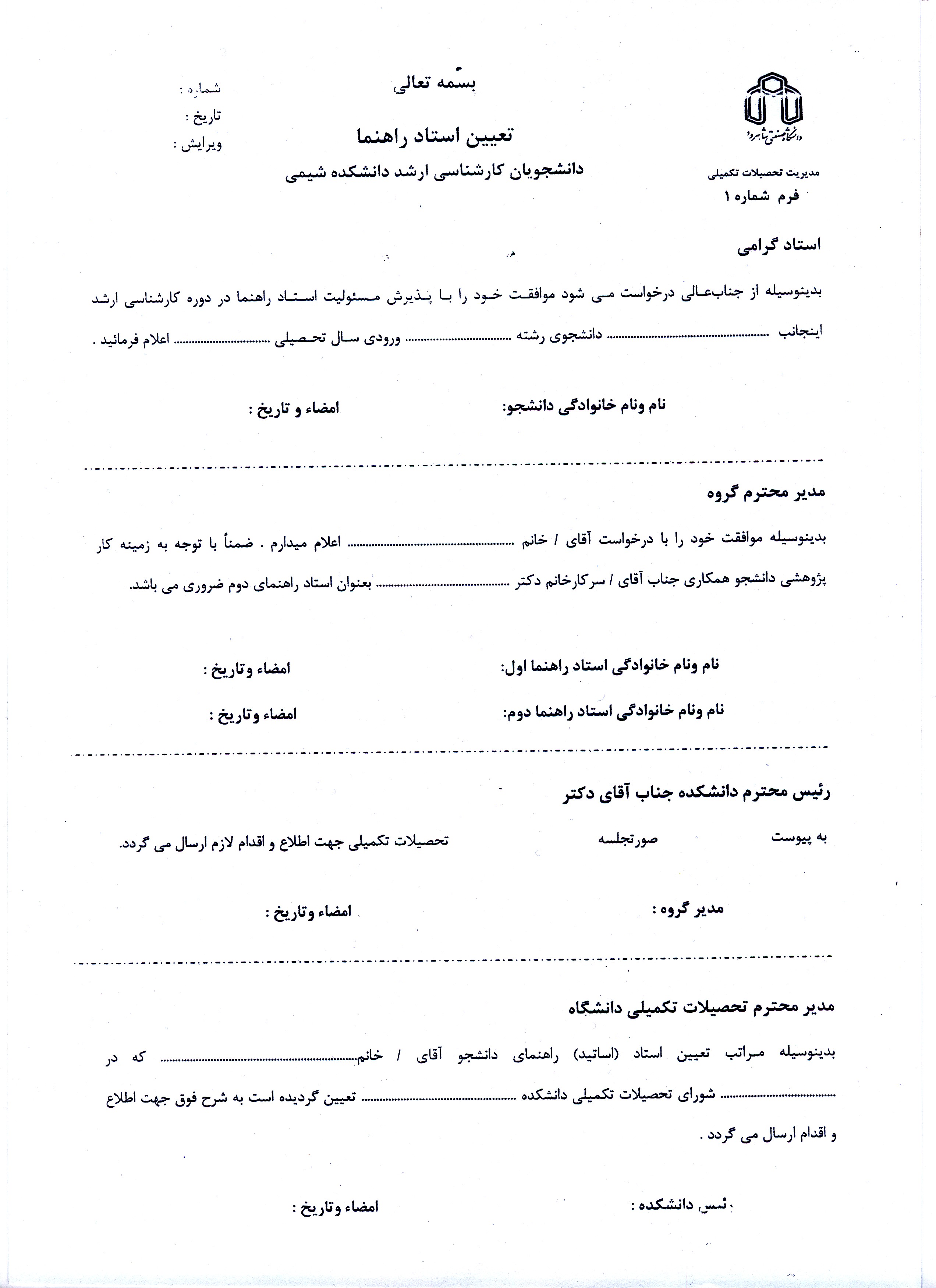 فرم انتخاب استاد راهنما برای دانشجویان ارشد
