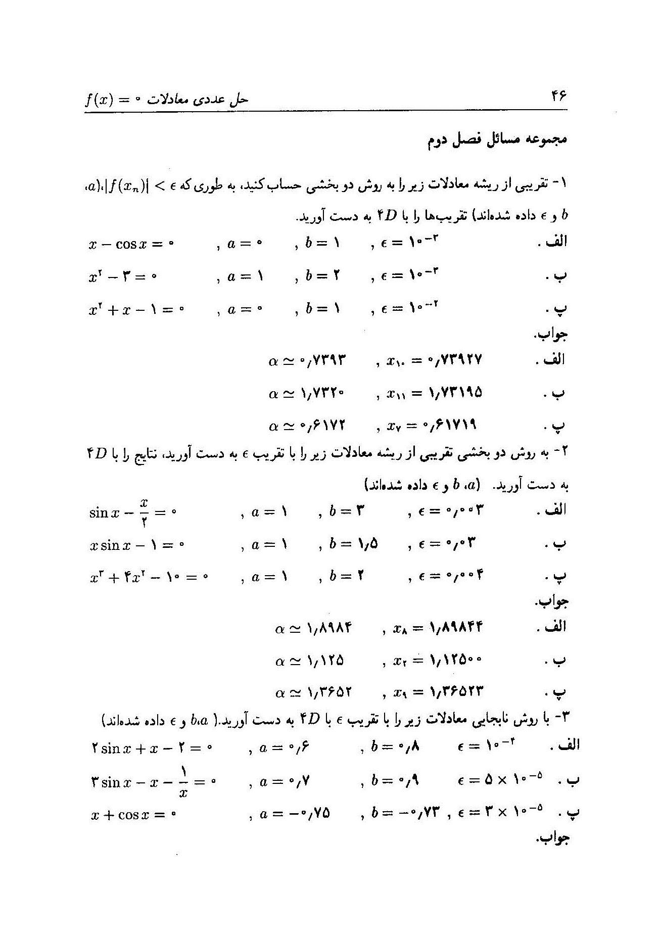 روشهای نیوتن-رفسون ، وتری ، نابجایی ، تکرار ساده