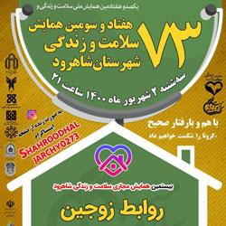 به گزارش روابط عمومی دانشگاه شاهرود، هفتاد و سومین همایش سلامت و زندگی و همچنین بیستمین سری از این همایش مجازی در روز سه شنبه دوم شهریورماه ۱۴۰۰ با موضوع "روابط زوجین " با حضور دکتر رضا ناظری ، روانشناس و کارشناس برنامه های صدا و سیما، به صورت مجازی برگزار شد.