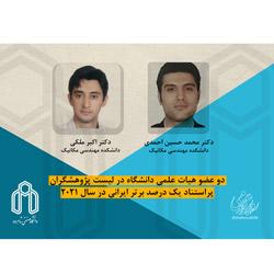 بر این اساس، دکتر اکبر ملکی و دکتر محمدحسین احمدی اعضای هیات علمی دانشکده مهندسی مکانیک دانشگاه صنعتی شاهرود در فهرست پژوهشگران پراستناد یک درصد برتر ایرانی در سال ۲۰۲۱ قرار گرفتند.