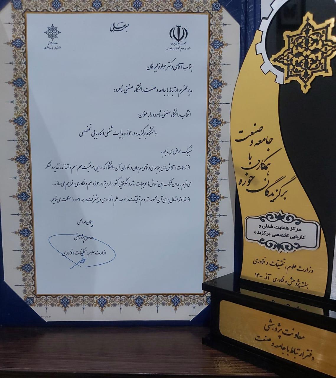 در این مراسم مرکز هدایت شغلی دانشگاه صنعتی شاهرود با عملکردی از جمله اخذ مجوز رسمی راه اندازی مرکز هدایت شغلی و کاریابی تخصصی به عنوان اولین مرکز کاریابی دارای مجوز از وزارت تعاون، کار و رفاه اجتماعی در استان سمنان، معرفی ۲۶۷ کارجو جهت انجام کار تمام وقت به شرکت ها و واحد های صنعتی استان در سال گذشته، انجام ۳۵۰ مشاوره شغلی، ساماندهی دوره های مهارت افزایی و ایجاد آکادمی کسب و کارجهت اجرای طرح مهتاب، ایجاد تفاهم نامه های مختلف همکاری با پارک علم و فناوری، شرکت ها و صنایع مختلف تخصصی و شتابدهنده های نوآوری و فناوری در راستای مهارت افزایی و اشتغال زایی به عنوان مرکز برتر هدایت شغلی دانشگاه های کشور انتخاب شد.