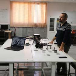 ایشان به مراحل مختلف فرایند تولید اشاره و مطرح نمود: مراحل نیازسنجی بازار، الگوبرداری از نمونه های پیشرو در دنیا و همچنین طراحی محصول داخلی انجام گرفته است. فرایندهای تولید در چند حوزه تولید موتور الکتریکی، تولید مجموعه گیربکس، مجموعه باتری، سیستم کنترل دوچرخه و نرم افزار تخصصی پیگیری می شود. در حال حاضر فرایند تولید موتور الکتریکی و مجموعه باتری همراه با سامانه هوشمند شارژ (BMS) به اتمام رسیده است و فرایندهای تولید سیستم کنترل دوچرخه برقی و نرم افزارهای مرتبط بر اساس شرایط کارکرد و اقلیم کشور در حال توسعه است. ان شاءالله با همکاری دانشجویان و همکاران مستقر در این شرکت تا 3 الی4 ماه آینده محصول نهایی درقالب مدل های مختلف به بازار عرضه خواهد شد.