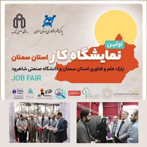 گفتنی است در پایان این مراسم، نخستین نمایشگاه کار استان سمنان به میزبانی دانشگاه صنعتی شاهرود با مشارکت پارک علم و فناوری استان سمنان و صنایع و گروه های تولیدی و علمی، پژوهشی مانند سیم و کابل مغان، مرکز نوآوری آب کشاورزی و انرژی، مرکز نوآوری زمین شناسی معدن و صنایع معدنی، موسسه شمیم، طب پلاستیک و ده ها شرکت دیگر در غرفه های مختلف با حضور نماینده شاهرود و میامی در مجلس و جمعی از مسئولان استانی و شهرستانی افتتاح شد ایننمایشگاه به مدت دو روز برپاست
