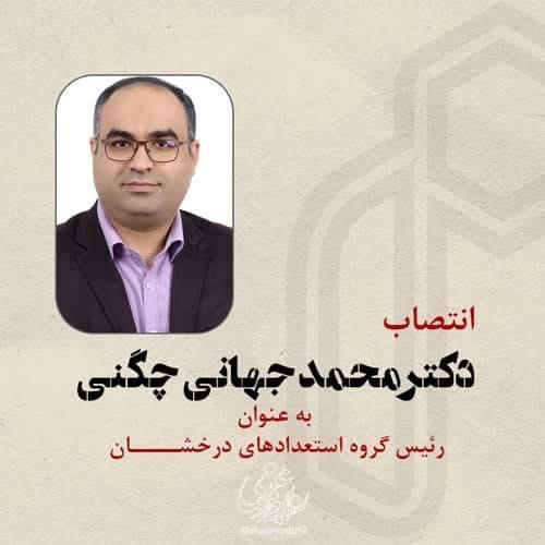 به گزارش روابط عمومی دانشگاه طی حکمی از سوی دکتر مرتضی ایزدی فرد رئیس این دانشگاه، با عنایت به بند «الف» ماده «17» آیین نامه جامع مدیریت دانشگاهها و موسسات آموزش عالی ، پژوهشی و فناوری و پیشنهاد معاون محترم آموزشی و تحصیلات تکمیلی دانشگاه به موجب این ابلاغ دکتر محمد جهانی چگنی را با حفظ پست سازمانی به مدت دو سال به عنوان رئیس گروه استعدادهای درخشان منصوب کرد
