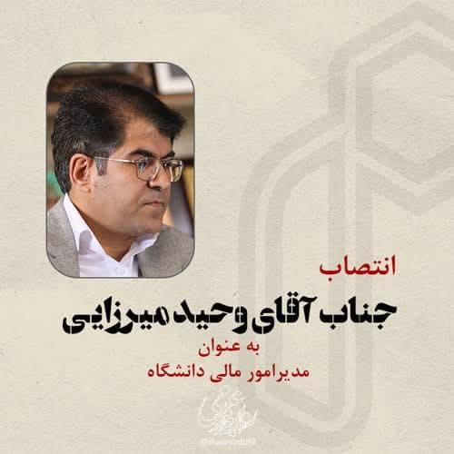 در حکمی که از طرف رئیس دانشگاه، آقای وحید میرزایی به عنوان مدیر امور مالی منصوب شد؛آمده است:
