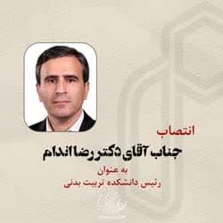 به گزا رش روابط عمومی دانشگاه صنعتی شاهرود، طی حکمی از سوی دکتر مرتضی ایزدی فرد رئیس این دانشگاه، به استناد بند «10- هـ » ماده «4» آیین نامه جامع مدیریت دانشگاه ها و موسسات آموزش عالی، پژوهشی و فناوری، دکتر رضا اندام به موجب این ابلاغ به مدت دو سال دیگر به عنوان رئیس دانشکده تربیت بدنی منصوب شد تا وظایف و امور محوله را بر اساس آیین نامه مذکور و با هماهنگی معاونین و مدیران محترم ستادی به انجام رساند.