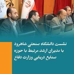 به گزارش روابط عمومی دانشگاه صنعتی شاهرود، طی نشستی جمعی از مدیران ارشد مرتبط با حوزه صنایع دریایی وزارت دفاع در راستای ارتباط بیشتر و همچنین ارائه نیازمندیهای آن سازمان در قالب طرح های صنعتی و پایان نامه های دانشجویی، پس از بازدید از مرکز آپا و آزمایشگاه های دانشکده های مهندسی عمران، شیمی و مواد، مکانیک، برق، کامپیوتر و ... با هیات رئیسه و جمعی از اعضای هیات علمی این دانشگاه، عصر روز شنبه 14 بهمن جاری در محل سالن اجتماعات کوثر به بحث و تبادل نظر پرداختند.