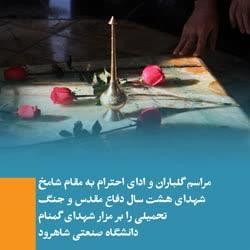 به گزارش روابط عمومی دانشگاه صنعتی شاهرود، به همت معاونت فرهنگی و اجتماعی این دانشگاه صبح روز دوشنبه 16 بهمن ماه جاری با عنايت به فرارسيدن ايام مبارك دهه فجر و چهل و پنجمین بهار پيروزي انقلاب شكوهمند اسلامي ايران، مراسم گلباران و اداي احترام به مقام شامخ شهداي هشت سال دفاع مقدس و جنگ تحميلي برگزار شد و هئیت رئیسه دانشگاه ، اساتید و کارکنان دانشگاه صنعتی شاهرود، با حضور در یادمان شهدای گمنام با آرمانهای شهدای انقلاب تجدید میثاق نمودند.