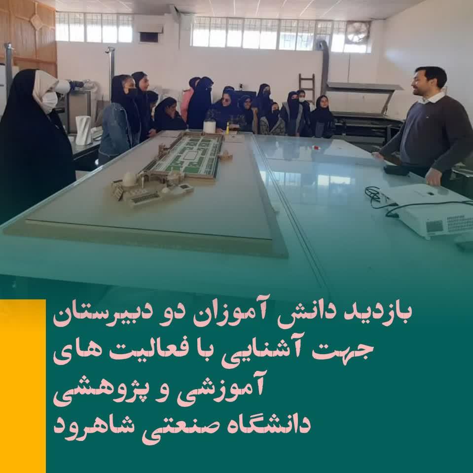 ۲۲ نفر از دانشآموزان دبیرستان دخترانه امام هادی در یک گروه کلاس نهمی ها و ۱۸ نفر از دانشآموزان دبیرستان دخترانه ام البنین در یک گروه کلاس نهمی ها از آزمایشگاه کانی شناسی با توضیحات مهندس میرباقری (دانشکده علوم زمین)، آزمایشگاه فیزیک یک با توضیحات مهندس سلطانی (دانشکده فیزیک)، آزمایشگاه شیمی تجزیه با توضیحات دکتر کلی (دانشکده شیمی)، کارگاه فناوری ساخت با توضیحان مهندس عرب ساغری (دانشکده معماری) و آز XRD , XRF با توضیحات مهندس عباسیان (دانشکده معدن) بازدید نمودند.