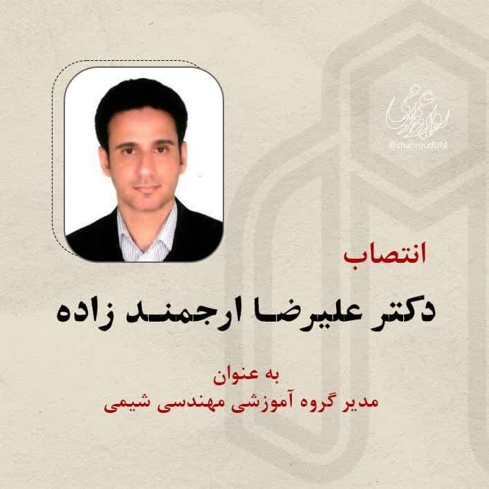 با عنایت به بند «ب» ماده «8» آئین نامه جامع مدیریت دانشگاه ها و مؤسسات آموزش عالی، پژوهشی و فناوری و پیشنهاد ریاست محترم دانشکده مهندسی شیمی و مواد به موجب این ابلاغ با حفظ پست سازمانی به مدت دو سال به عنوان مدیر گروه آموزشی مهندسی شیمی منصوب میشوید تا بر اساس آئین نامه مذکورنسبت به انجام وظایف محوله با هماهنگی و زیر نظر ریاست محترم دانشکده اقدام نمایید.